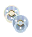 De BIBS Colour fopspenen in de stijlvolle kleuren Baby Blue/Dusty Blue mix combineren veiligheid, comfort en design in één. Met hun ronde speenvorm van 100% natuurlijk rubber zijn deze spenen perfect afgestemd op de natuurlijke zuigreflex van je baby. Ideaal voor ouders die kiezen voor hoogwaardige materialen en een rustgevende look.