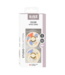 Het ronde schildje is licht gebogen en zorgt ervoor dat er zo min mogelijk contact is met de huid rondom de mond. Dit voorkomt huidirritatie en ondersteunt het natuurlijke zuiggedrag, wat deze speen ook ideaal maakt voor baby’s die borstvoeding krijgen. Het speengedeelte is gemaakt van 100% natuurlijk rubber en voelt zacht en comfortabel aan.