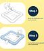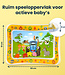 Of je nu thuis bent in de woonkamer of op bezoek gaat bij opa en oma, de waterspeelmat is zo opgezet. Je blaast de buitenste rand op met lucht en vult het binnenste gedeelte met kraanwater. Ben je klaar met spelen? Laat het water en de lucht eruit lopen, vouw de mat op en hij past met gemak in elke luiertas of koffer. Zo heb je altijd entertainment bij de hand.