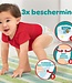Zodra je baby begint te bewegen, is hij kampioen in rollen, zich uitrekken en klimmen om de wereld te ontdekken. Je baby heeft onze Baby-Dry Pants nodig die de beste bescherming bieden tegen lekken: hun Stop & Protect Pocket helpt lekken aan de achterkant van het luierbroekje te voorkomen, hun 360° rekbare tailleband past zich aan het lichaam aan om openingen en lekken te voorkomen en dubbele beschermrandjes helpen lekken rond de beentjes voorkomen, en zorgen zo voor bescherming rondom tegen lekken tot 12 uur lang. Net als alle andere Pampers luierbroekjes zijn de Pampers Baby-Dry Pants heel eenvoudig te verschonen, zelfs als je baby veel beweegt: je trekt ze in één beweging aan, scheurt de zijkanten open om ze uit te trekken, rolt ze op en gebruikt de plakstrip om ze weg te gooien. Net zoals bij jou, komt jouw baby's veiligheid bij Pampers op de eerste plaats: Pampers Baby-Dry Pants luierbroekjes zijn dermatologisch getest en bevatten 0% EU-parfumallergenen (zoals gereglementeerd in de EU-regelgeving voor cosmetica (EC) No 1223/2009). Ze zijn goedgekeurd door de dermatologen van de Skin Health Alliance en getest en Standard 100 gecertificeerd door OEKO-TEX. Wil je weten wat de bestanddelen zijn van onze producten? Bezoek Pampers.nl