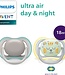 De Philips Avent Ultra Air Duo Fopspenen combineren comfort en gemak in één slimme verpakking. Deze set bevat twee spenen: één voor overdag en één speciaal ontworpen voor ‘s nachts met een glow-in-the-dark schildje – ideaal om in het donker terug te vinden zonder het licht aan te doen.